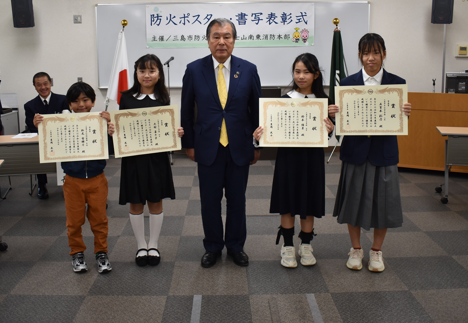 三島市防火協会では、秋季全国火災予防運動の一環として、幼少期における防火意識の高揚を図るため、市内幼年消防クラブ、小学校児童及び中学校生徒から防火ポスター及び書写の募集を行いました。